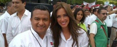 Para apoiar o candidato ao governo de Chiapas do Partido Revolucionario Intitucional (PRI), Manuel Velasco Coelho, a cantora Anahí acompanhou o candidato Enrique Peña Nieto no seu fechamento de campanha eleitoral, em Tuxtla Gutiérrez.