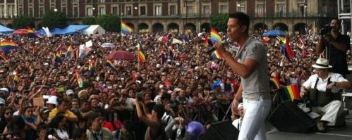 Finalmente Christian Chávez esteve presente na Parada gay mexicana. O cantor, que vem sendo um ícone gay desde que assumiu sua homossexualidade em 2007, causou muita agitação ao comparecer na marcha do orgulho gay, na cidade do México.