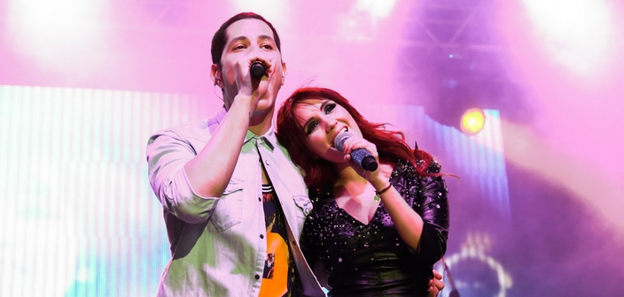 Dulce María e Christian Chávez cantam juntos em show em São Paulo